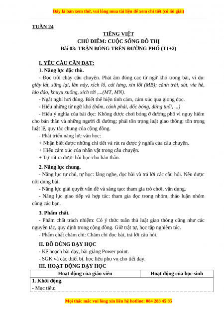Bài 03: TRẬN BÓNG TRÊN ĐƯỜNG PHỐ (T1+2) I. YÊU CẦU CẦN ĐẠT: 1. Năng lực đặc thù.