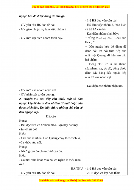 - SGK và các thiết bị, học liệu phụ vụ cho tiết dạy.