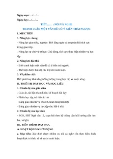 TRANH LUẬN MỘT VẤN ĐỀ CÓ Ý KIẾN TRÁI NGƯỢC I. MỤC TIÊU 1. Năng lực chung