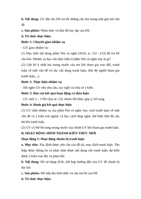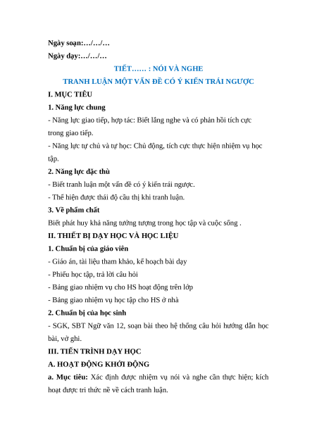 Giáo án Tranh luận một vấn đề có ý kiến trái ngược Ngữ Văn 12 Chân trời sáng tạo