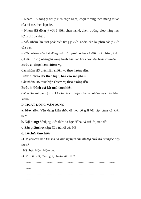 (2) GV có thể bổ sung mong muốn của chính GV khi tham gia tranh luận.