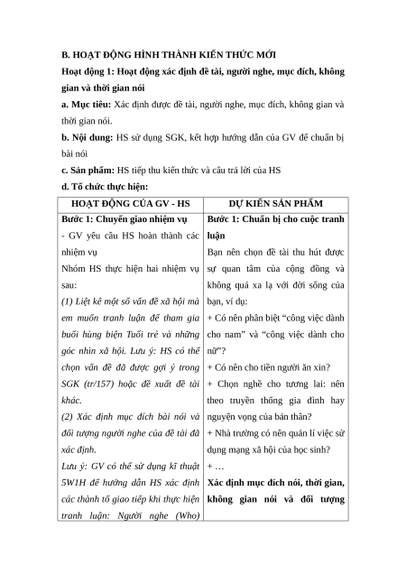 b. Nội dung: HS sử dụng SGK, kết hợp hướng dẫn của GV để chuẩn bị bài nói