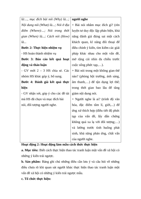 – Kích hoạt được kiến thức nền liên quan đến kĩ năng tranh luận một vấn