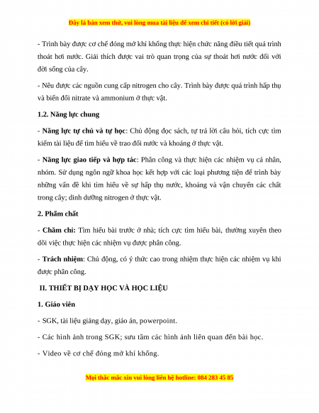 và biến đổi nitrate và ammonium ở thực vật. 1.2. Năng lực chung