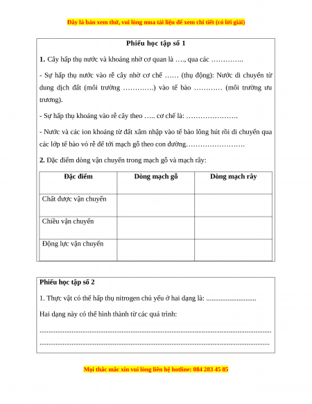 1. Cây hấp thụ nước và khoáng nhờ cơ quan là …., qua các …………..