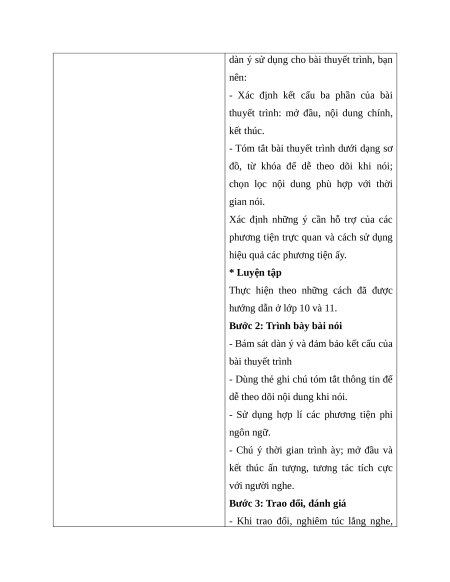 - Biết cách nói và nghe phù hợp: người nói và người nghe trao đổi, đánh giá để cùng rút kinh nghiệm. 2. Về năng lực a. Năng lực chung