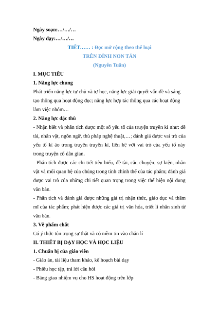 TRÊN ĐỈNH NON TẢN (Nguyễn Tuân) I. MỤC TIÊU 1. Năng lực chung