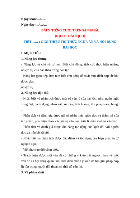 BÀI 5. TIẾNG CƯỜI TRÊN SÂN KHẤU