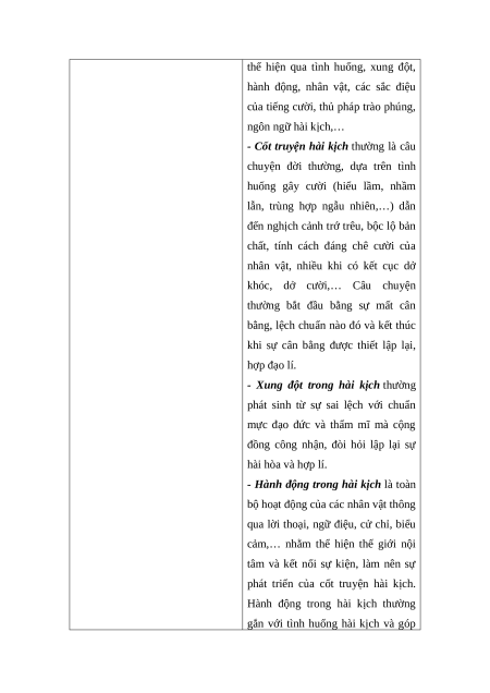 - Nhận biết và phân tích được một số yếu tố của hài kịch như: ngôn ngữ,