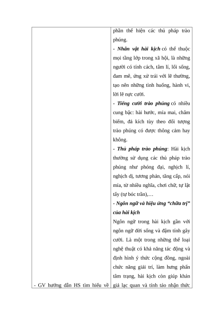 - GV hướng dẫn HS tìm hiểu về 1. Hài kịch là một thể loại kịch hài kịch.