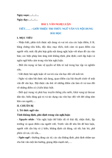 TIẾT…… : GIỚI THIỆU TRI THỨC NGỮ VĂN VÀ NỘI DUNG BÀI HỌC I. MỤC TIÊU