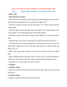 BÀI 2. GIÁ TRỊ CỦA VĂN CHƯƠNG (VĂN BẢN NGHỊ LUẬN)