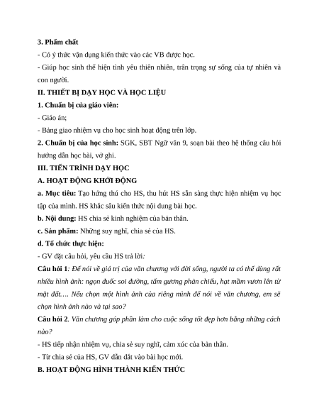 2. Chuẩn bị của học sinh: SGK, SBT Ngữ văn 9, soạn bài theo hệ thống câu hỏi