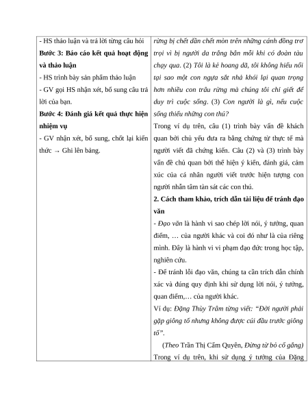 - Trình bày được một số lưu ý về tham khảo, trích dẫn tài liệu để tránh đạo văn.