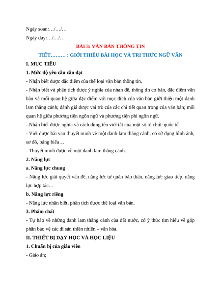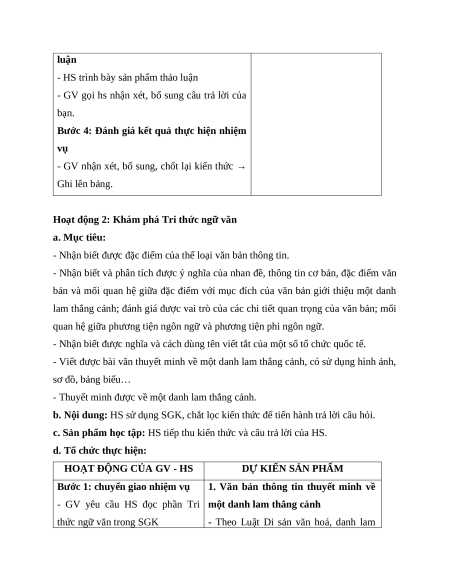 - Thuyết minh được về một danh lam thắng cảnh. 2. Năng lực a. Năng lực chung