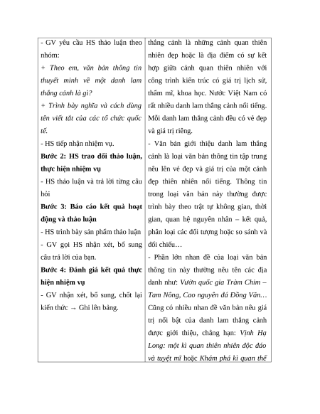 Bước 2: HS trao đổi thảo luận, cảnh là loại văn bản thông tin tập trung