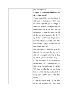 - Nhận biết được nghĩa và cách dùng tên viết tắt của một số tổ chức quốc tế.