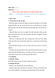 TIẾT…… : GIỚI THIỆU TRI THỨC NGỮ VĂN VÀ NỘI DUNG BÀI HỌC I. MỤC TIÊU