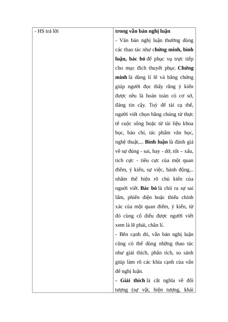 minh, bình luận, bác bỏ, giải thích, phân tích, so sánh trong văn bản nghị luận.