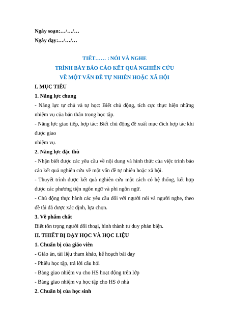 VỀ MỘT VẤN ĐỀ TỰ NHIÊN HOẶC XÃ HỘI I. MỤC TIÊU 1. Năng lực chung