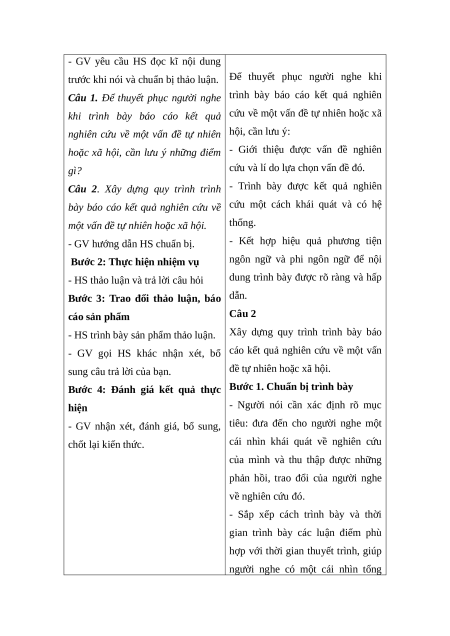 Giáo án Trình bày báo cáo kết quả Ngữ Văn 12 Kết nối tri thức
