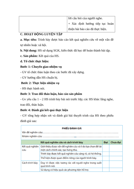- Thuyết trình được kết quả nghiên cứu một cách có hệ thống, kết hợp
