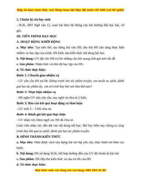 Giáo án Trình bày kết quả so sánh, đánh giá hai tác phẩm truyện Ngữ Văn 12 Kết nối tri thức