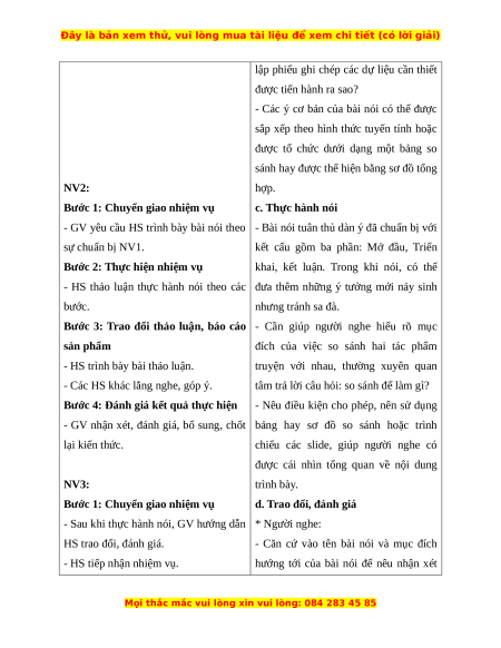 - HS thảo luận thực hành nói theo các đưa thêm những ý tưởng mới nảy sinh bước. nhưng tránh sa đà.