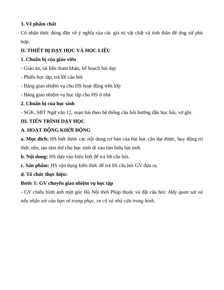 - Có nhận thức đúng đắn về ý nghĩa của các giá trị vật chất và tinh thần để ứng xử phù hợp. II. CHUẨN BỊ