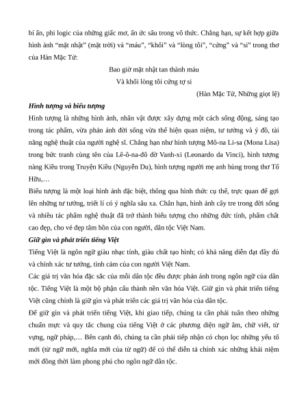 mới đồng thời làm phong phú cho ngôn ngữ dân tộc. Lưu ý: