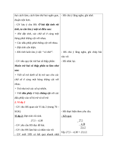 - GV giới thiệu cách đặt tính và trừ hai số thập phân.