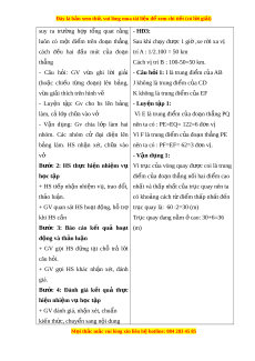 ữ vào nên ta có : PF=EF= 62=3 đ n v ơ . ị vở - Vận d ng 1: ụ Bư c ớ 2: HS th c ự hi n ệ nhi m ệ vụ Vì tr c c ụ a ủ vòng quay đư c coi ợ là trung h c t ọ p ậ đi m ể c a ủ đo n t ạ h ng ẳ n i ố hai đi m ể cao + HS ti p ế nh n ậ nhi m ệ v , ụ trao đ i ổ , nhất và th p nh ấ t ấ c a ủ tr c ụ quay nên ta th o l ả u n. ậ có kho ng ả cách từ đi m ể thấp nhất đ n ế + GV quan sát HS ho t ạ đ ng, ộ h t ỗ rợ tr c quay l ụ à: 60 :2=30 (m) khi HS c n ầ Tr c quay đang n ụ m ằ cao: ở 30+6=36 Bư c ớ 3: Báo cáo k t ế quả ho t ạ (m) đ ng và t ộ hảo lu n ậ + GV g i ọ HS đ ng ứ t i ạ chỗ trả l i ờ câu h i ỏ . + GV g i ọ HS khác nh n ậ xét, đánh giá. Bư c ớ 4: Đánh giá k t ế quả th c ự hi n nhi ệ m ệ v h ụ c ọ t p ậ + GV đánh giá, nh n xét ậ , chu n ẩ ki n t ế h c, chuy ứ n s ể ang n i ộ dung M i ọ thắc m c
