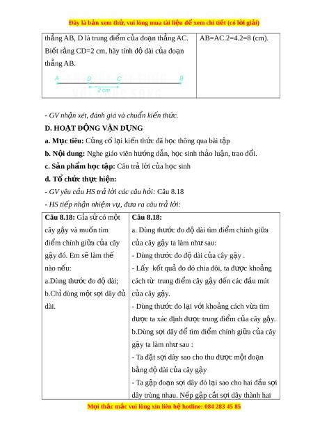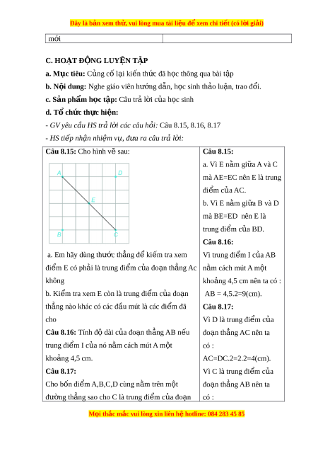 Đây là bản xem th , vu ử i lòng mua tài li u ệ đ xe ể m chi ti t ế (có l i ờ gi i ả ) Ngày so n: ạ …/…/… Ngày d y: ạ …/…/… BÀI 35: TRUNG ĐI M C Ể ỦA ĐO N Ạ TH N Ẳ G I. M C Ụ TIÊU 1. Mức đ / ộ yêu c u c ầ n đ ầ t ạ Nh n bi ậ t ế đư c ợ khái ni m ệ trung đi m ể c a ủ đo n t ạ h ng ẳ