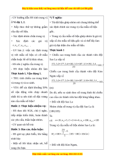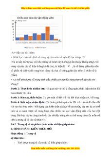 ụ HS quan sát và chú ý l n ắ g nghe, th o ả lu n ậ nhóm đôi hoàn thành yêu c u ầ . Bư c ớ 3: Báo cáo, th o ả lu n: ậ GV g i ọ m t ộ s ố HS tr ả l i ờ , HS khác nh n ậ xét, b ổ sung. Bư c ớ 4: K t ế lu n, ậ nh n ậ đ nh: ị GV đánh giá k t ế qu ả c a ủ HS, trên c ơ s ở đó d n ẫ d t ắ HS vào bài h c ọ m i ớ : “Sử d n ụ g các ki n ế th c ứ đã h c ọ ở bài tr c, ướ các em đã có thể tính và so sánh đ c ượ số trung bình c a ủ chi u ề cao các v n ậ đ n ộ g viên c a ủ hai đ i ộ bóng. Bài h c ọ này ta cùng tìm hi u ể các s ố đ c ặ tr n ư g đo xu th ế trung tâm c a ủ m u ẫ số li u ệ là trung v ịvà các t ứ phân v ”. ị Bài 2. Trung v ị và t ứ phân v ị c a ủ m u ẫ s ố li u ệ ghép nhóm.