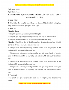 bằng nhau thứ ba của tam giác: góc – cạnh – góc. 2. Năng lực Năng lực chung:
