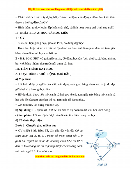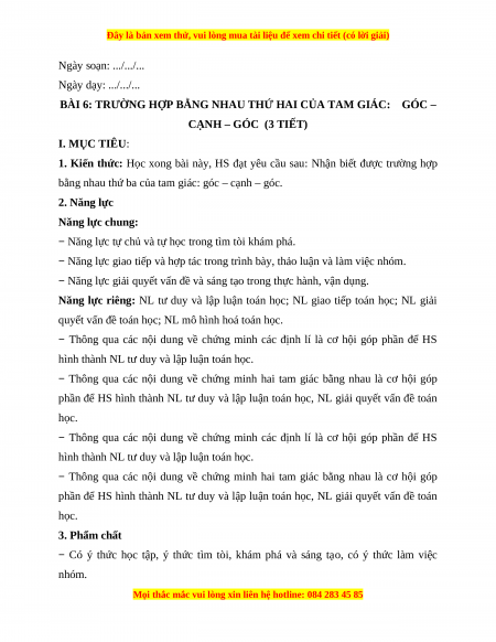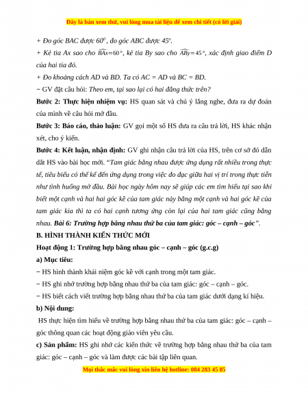 Giáo án Trường hợp bằng nhau thứ ba của tam giác. Góc-cạnh-góc Toán 7 Cánh diều