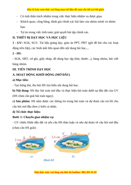 Giáo án Trường hợp đồng dạng thứ hai của tam giác Toán 8 Cánh diều