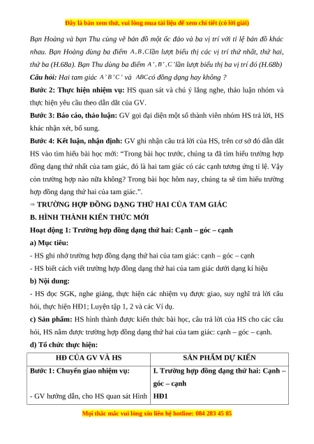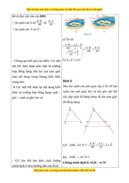 - HS biết cách viết trường hợp đồng dạng thứ hai của tam giác dưới dạng kí hiệu b) Nội dung: