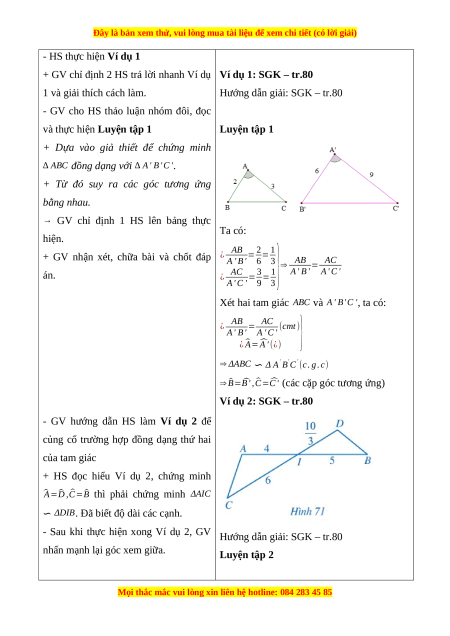 - Giải quyết vấn đề toán học: sử dụng các tính chất của trường hợp đồng dạng