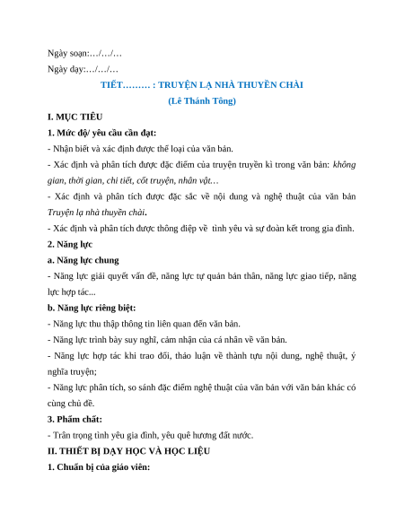 TIẾT……… : TRUYỆN LẠ NHÀ THUYỀN CHÀI (Lê Thánh Tông) I. MỤC TIÊU