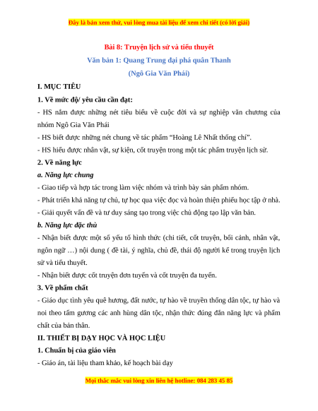 Văn bản 1: Quang Trung đại phá quân Thanh (Ngô Gia Văn Phái) I. MỤC TIÊU
