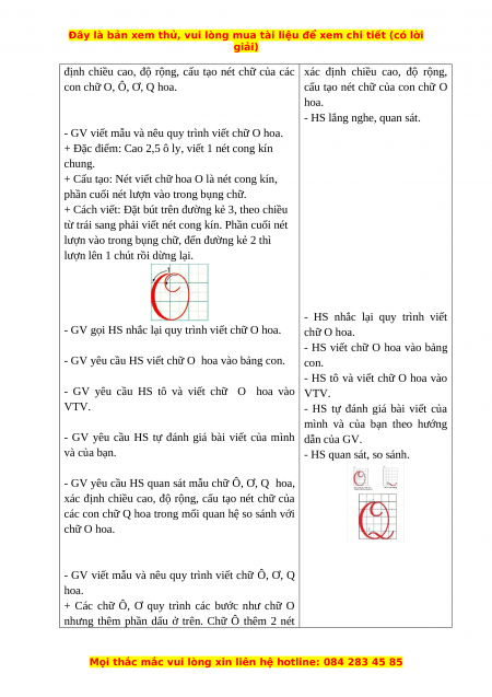 định chiều cao, độ rộng, cấu tạo nét chữ của các xác định chiều cao, độ rộng, con chữ O, Ô, Ơ, Q hoa.