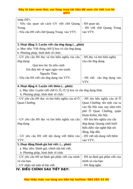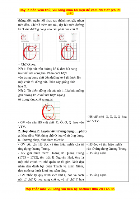 a. Mục tiêu: Luyện viết chữ O, Ô, Ơ, Q hoa và câu ứng dụng khác.