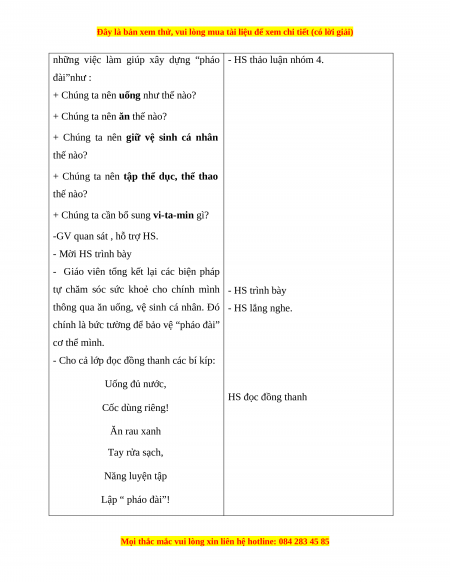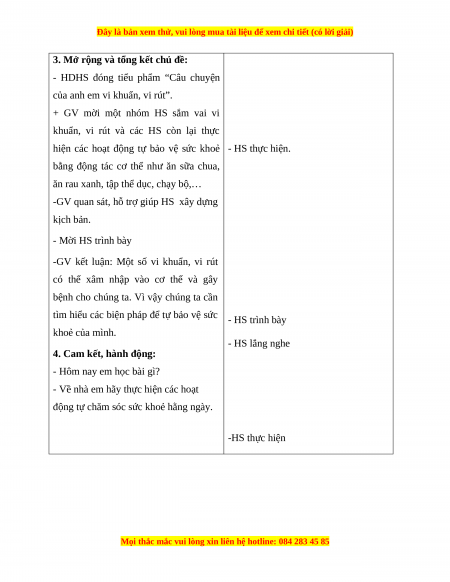 - Giúp HS biết tự bảo vệ sức khoẻ để chống lại vi khuẩn, vi rút xâm nhập.