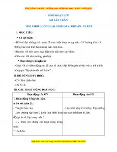 TRÒ CHƠI CHỐNG LẠI ANH EM VI KHUẨN , VI RÚT I. MỤC TIÊU: * Sơ kết tuần: