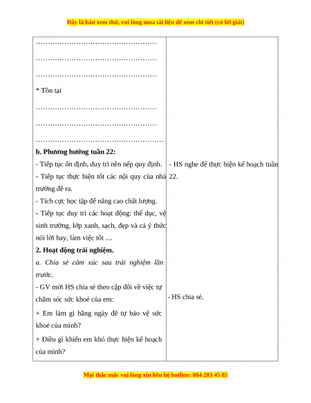 Giáo án Tự chăm sóc sức khỏe bản thân Hoạt động trải nghiệm 2 Kết nối tri thức