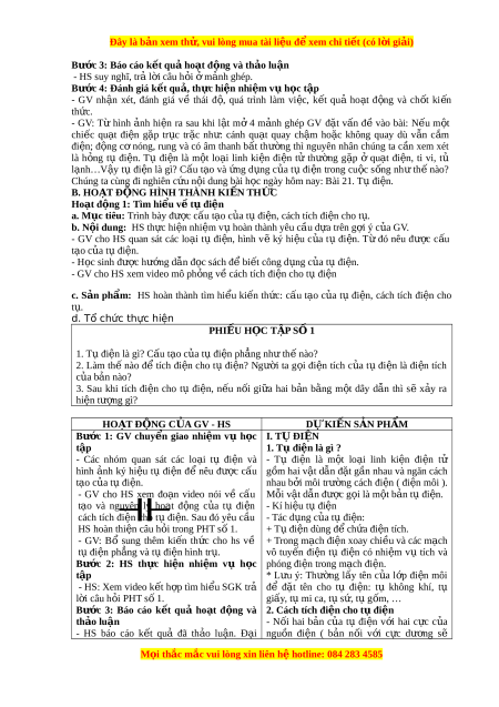 Đây là bản xem th , vu ử i lòng mua tài li u ệ đ xe ể m chi ti t ế (có l i ờ gi i ả ) Bư c ớ 3: Báo cáo k t q ế u h ả o t đ ạ n ộ g và th o l ả u n ậ - HS suy nghĩ, trả l i ờ câu h i ỏ m ở nh ghé ả p. Bư c