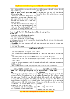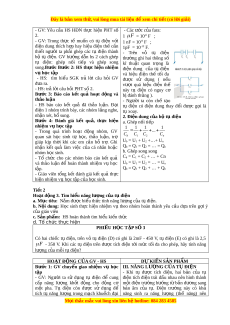 ố oại tụ điện, bản vi mạch điện t c ử ó t đi ụ n. ệ - Các video thí nghi m ệ tích đi n c ệ ho t đi ụ n. ệ 2. H c ọ sinh - SGK, v ghi ở bài, giấy nháp... - M t ộ s l ố oại tụ điện. III. TI N Ế TRÌNH D Y Ạ H C Ọ Ti t 1 ế A. HO T Ạ Đ N Ộ G KHỞI Đ N Ộ G a. M c ụ tiêu: - Ki m ể tra s c ự huẩn bị ki n t ế h c ứ cũ GV đã giao v nhà ề . - Tìm hi u c ể ác loại t đi ụ n ệ có s n và ẵ trong vi m c ạ h đi n ệ t . ử b. N i ộ dung: HS th c ự hi n ệ các yêu c u ầ c a ủ GV ( tr l ả i ờ các câu h i ỏ trong 4 m nh ả ghép để ôn tập lại kiến th c ứ bài trư c ớ ) Câu 1. Đi n t ệ h l ế à đại lư ng ợ đ c ặ tr ng ư cho riêng đi n t ệ rư ng ờ về A. phư ng ơ di n t