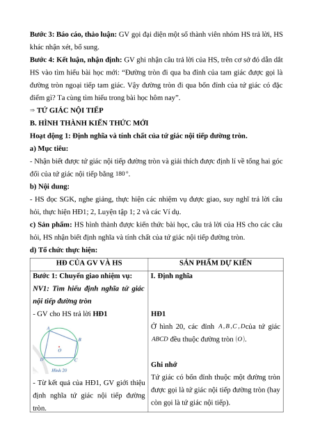 Giáo án Tứ giác nội tiếp đường tròn Toán 9 Cánh diều