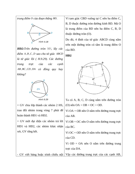 Do đó, 4 đỉnh của tứ giác ABCD cùng nằm